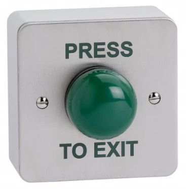 This robust stainless steel exit button is designed for frequent use and environments requiring enhanced durability. The large green dome provides clear visual identification and effortless operation.